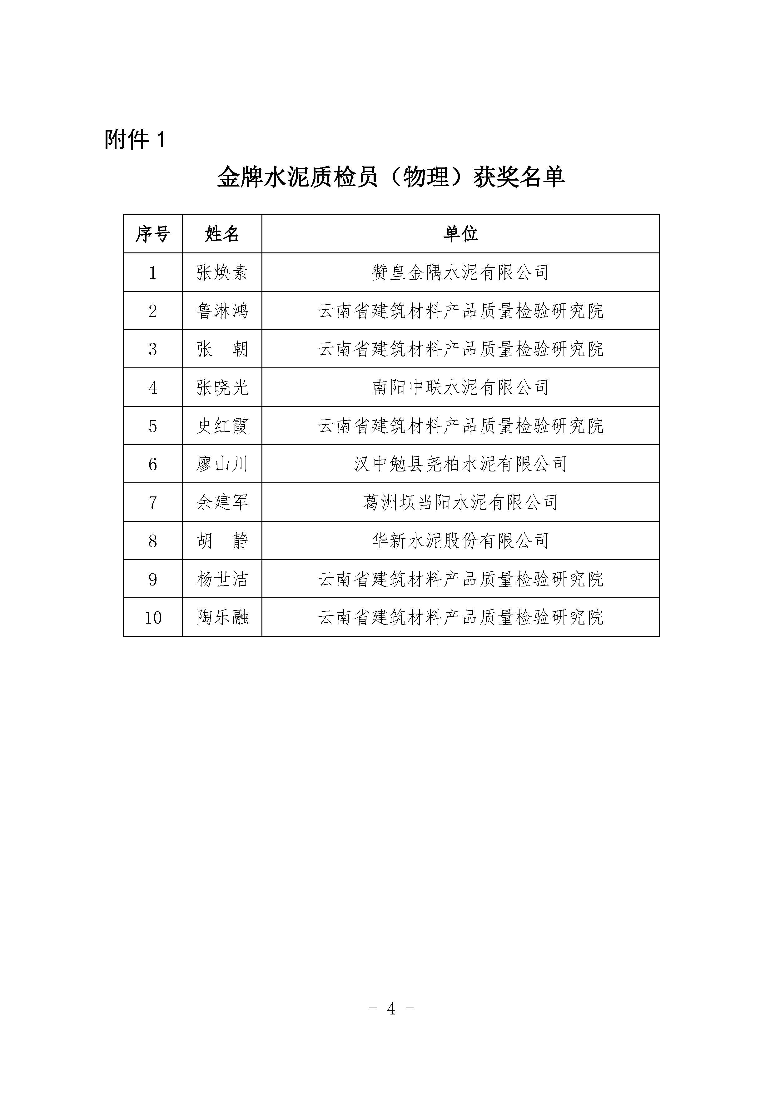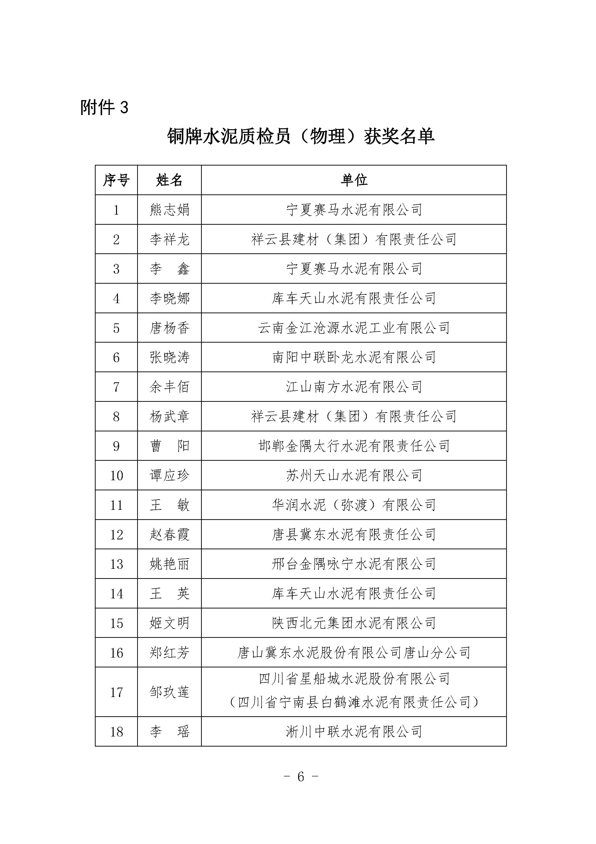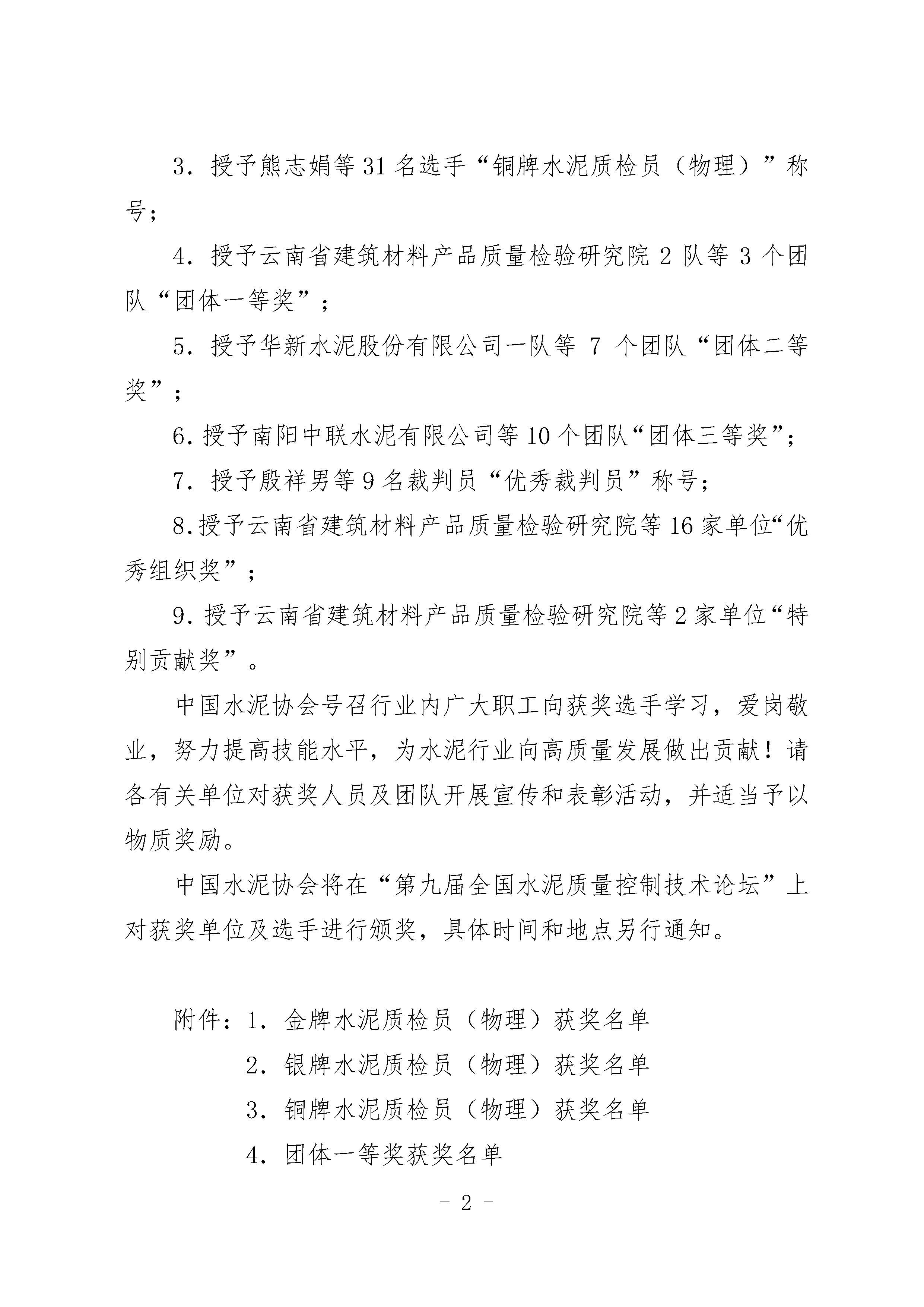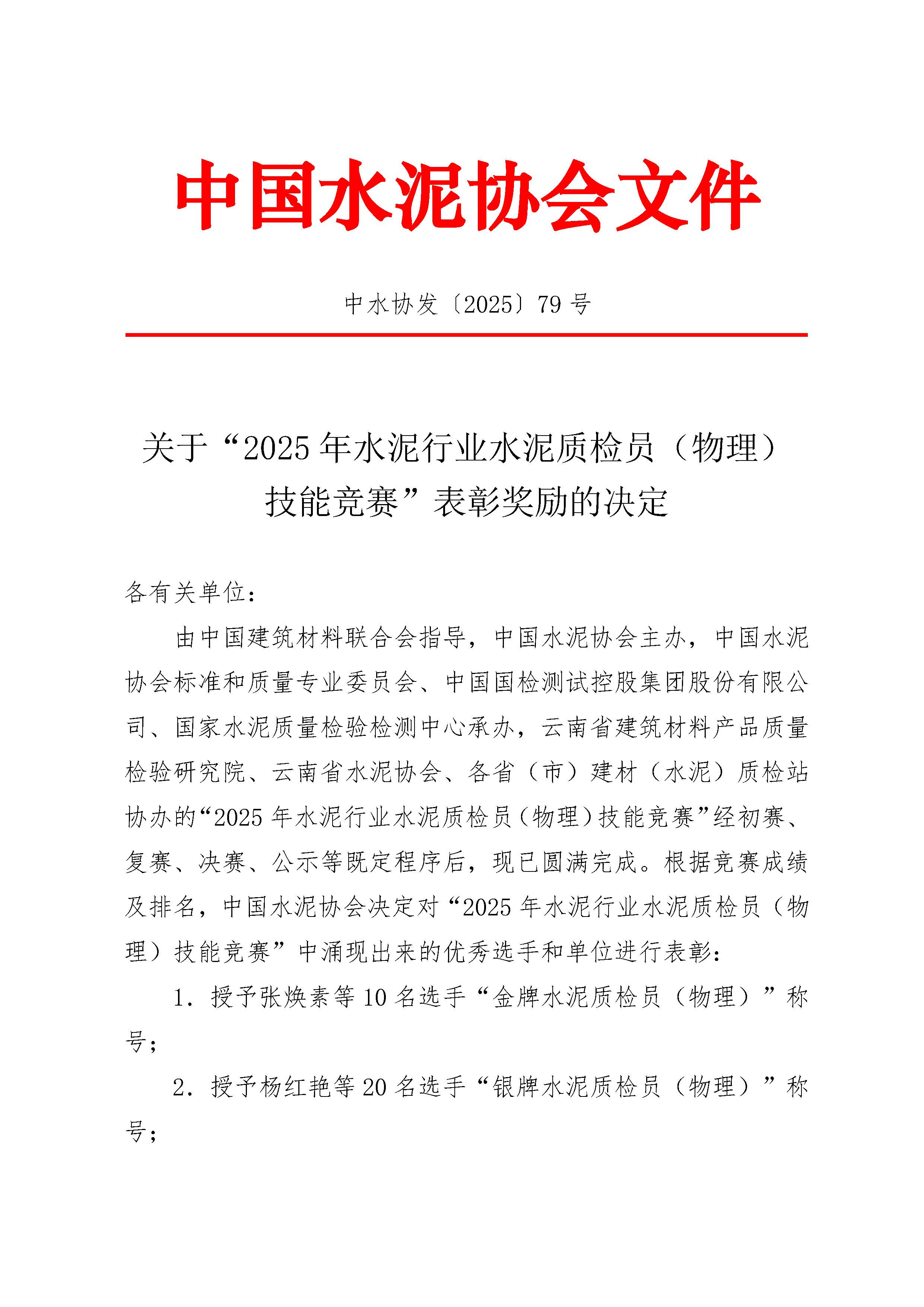 關(guān)于“2025年水泥行業(yè)水泥質(zhì)檢員(物理)技能競賽”表彰獎勵的決定